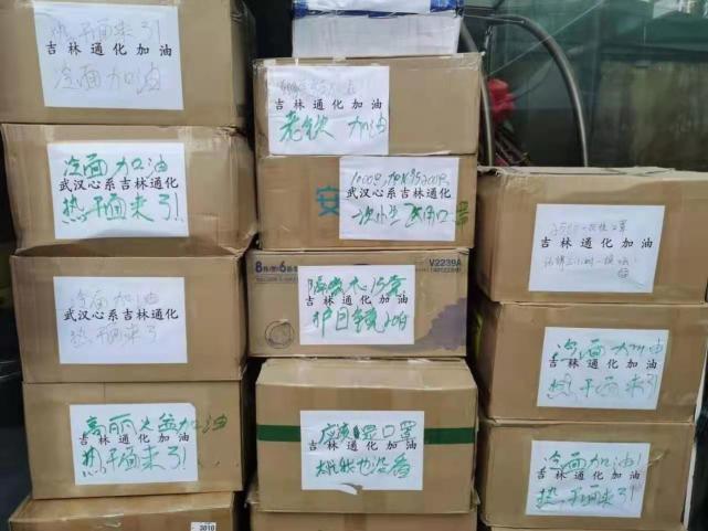 林诚表示,目前筹集到的物资主要是防护服、口罩、护目镜等医疗物资,也有以热干面为代表的武汉食品物资。微光救援队在网上发布的照片显示,一些物资箱上写着“冷面加油,热干面来了”“老铁加油”“一次性口罩记得三小时一换哦”。林诚表示,希望能在保证物资之外,通过这些话语起到更多价值,为通化市民加油打气。