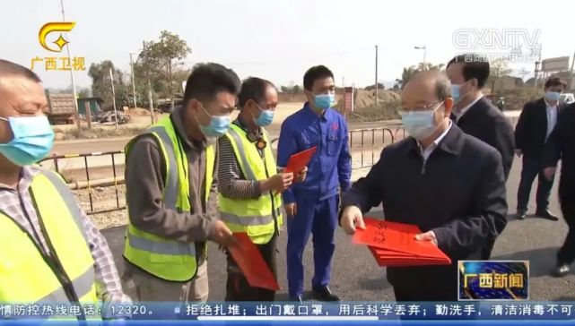 广西壮族自治区主席蓝天立也到了生产车间,向坚守在施工一线的工人送上新春祝福,感谢他们为疫情防控工作和贵南高铁建设所作的贡献。