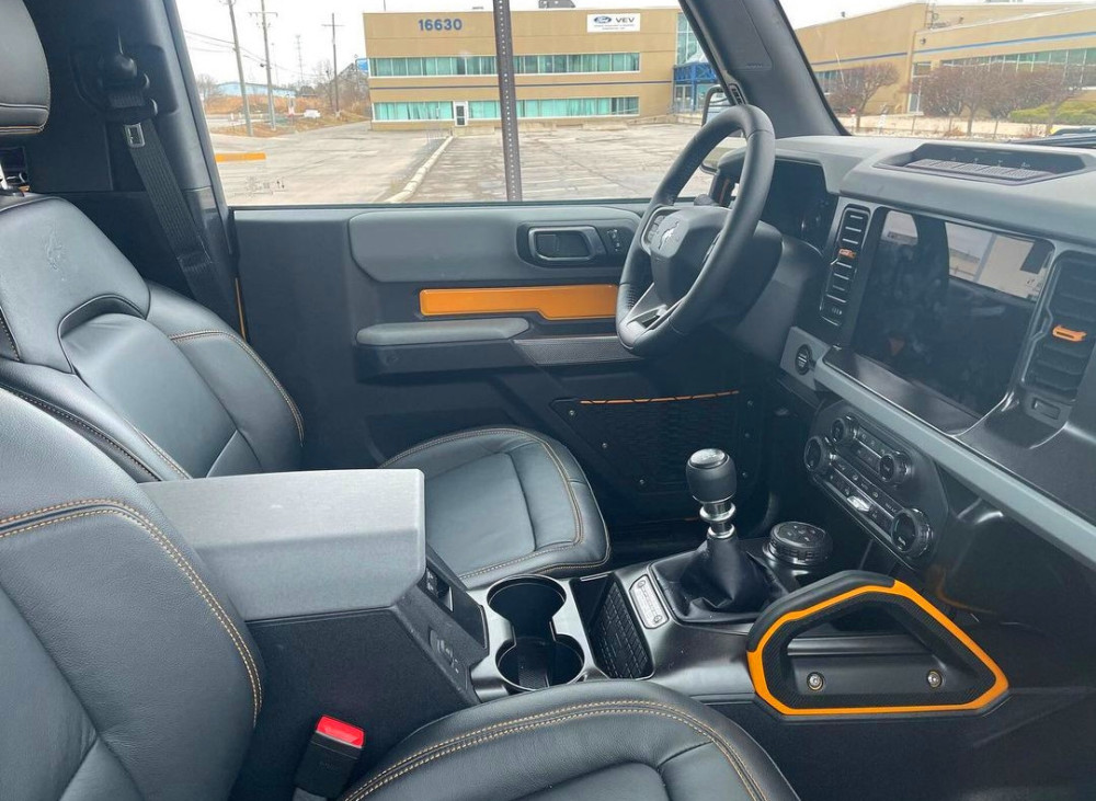 两门版的Bronco将提供可拆卸的车门,对于一台定位于硬派越野的SUV来说,福特Bronco可以做到面面俱到,在面对复杂泥泞的越野环境中,将两侧的车门拆卸掉后所获得的优势即是,可以更加直观靠近驾驶位的车轮陷入情况,并且上下车更加方便。可拆卸车顶同样也值得一说,车顶的材质为布制造,不仅提高整车的用车档次感且开启便捷之外,福特Bronco还带有独特的上翻功能,可以让驾驶者轻而易举地拿到后备箱的物品,并且拆卸方便。
