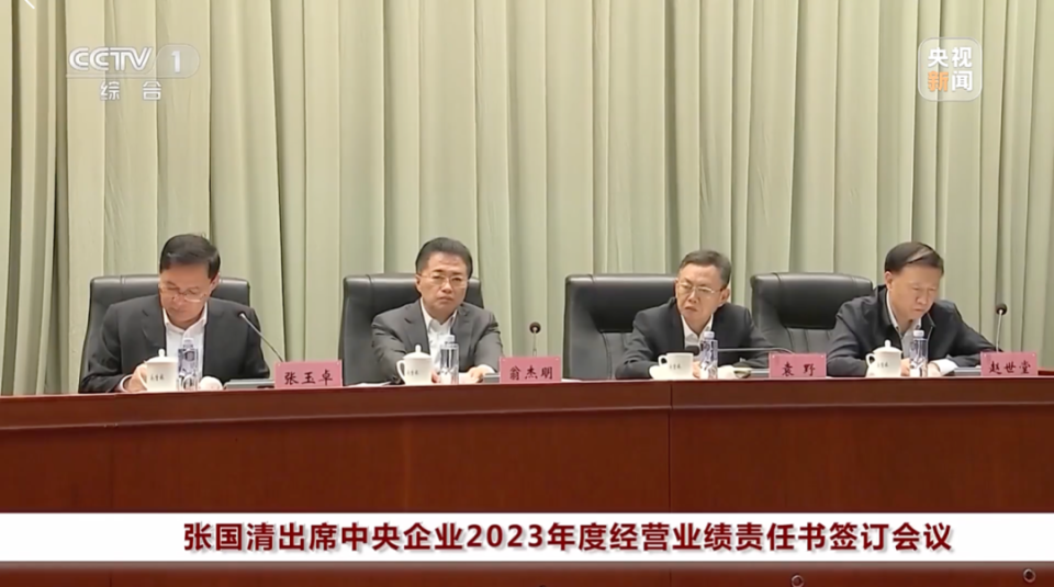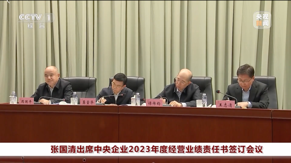 央视披露了中央企业2023年度经营业绩责任书签订会议的现场画面。