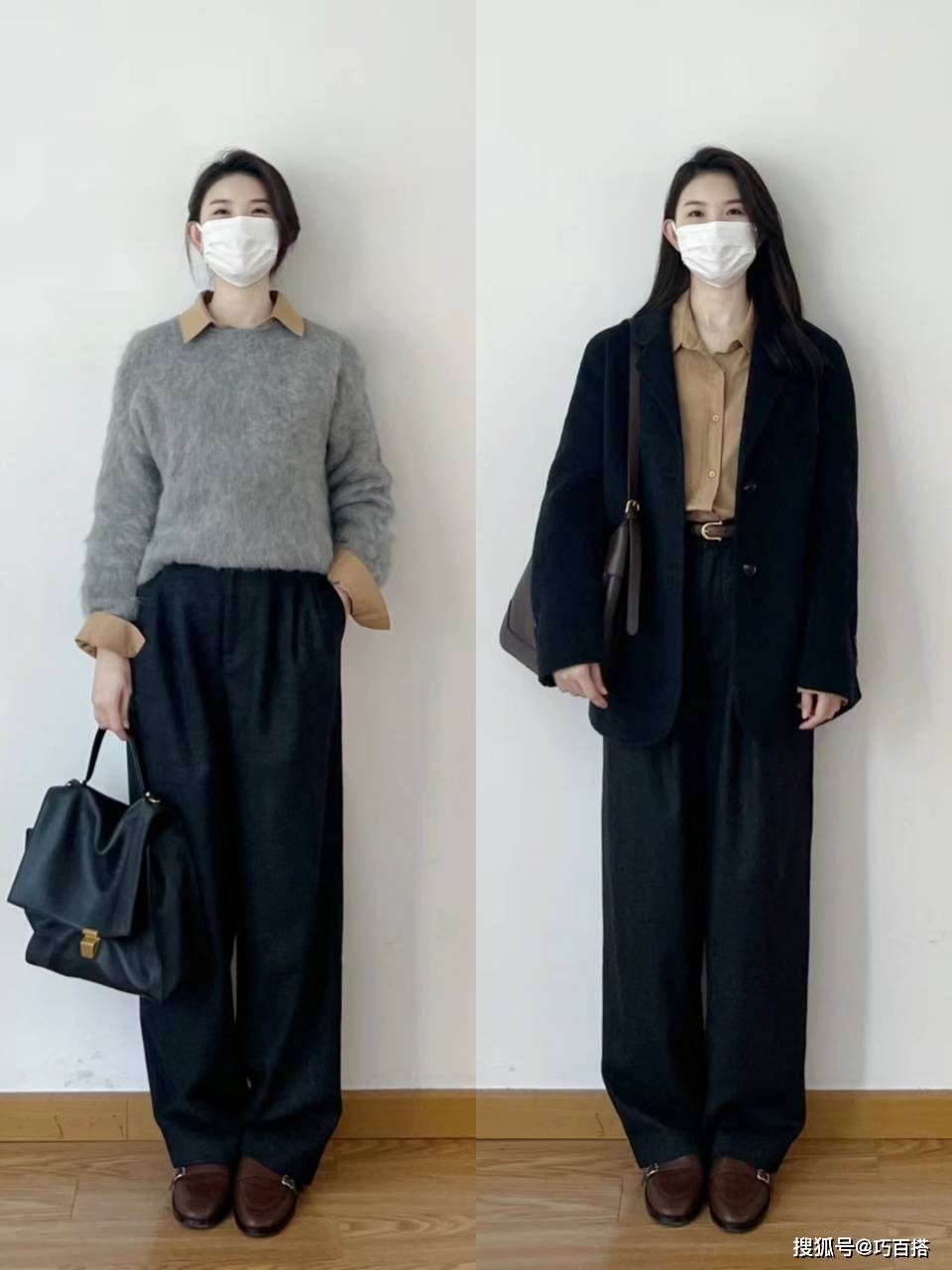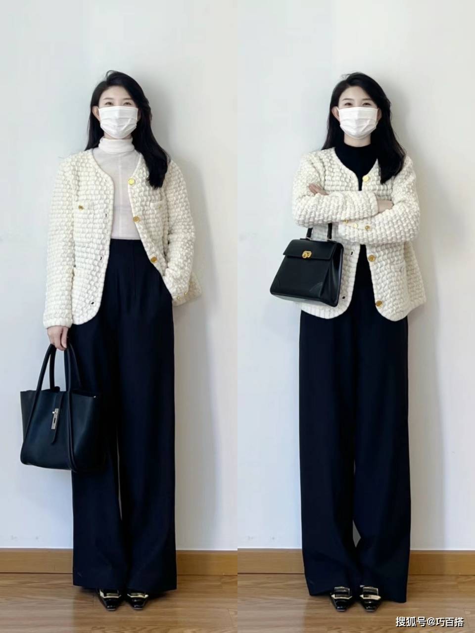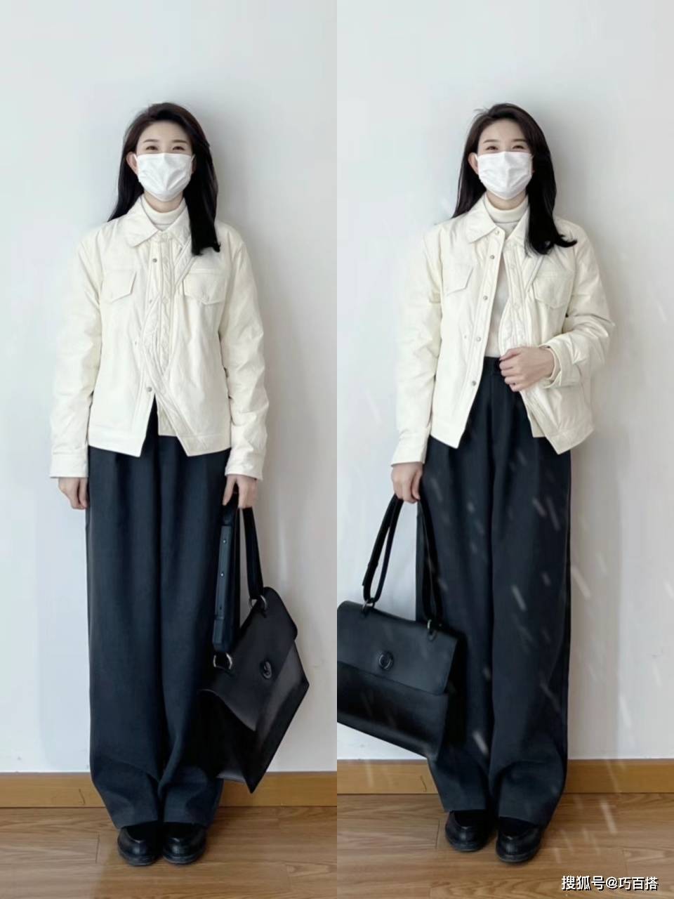 这里需要提醒大家一下,如果你特别怕冷,在挑选阔腿西装裤之余还可以内搭加绒打底裤,不夸张的说,只要西装裤不加绒,在视觉呈现上整体造型就是不拉胯的。