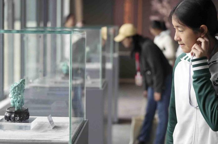 学生们在云盖寺绿松石国家矿山博物馆参观。