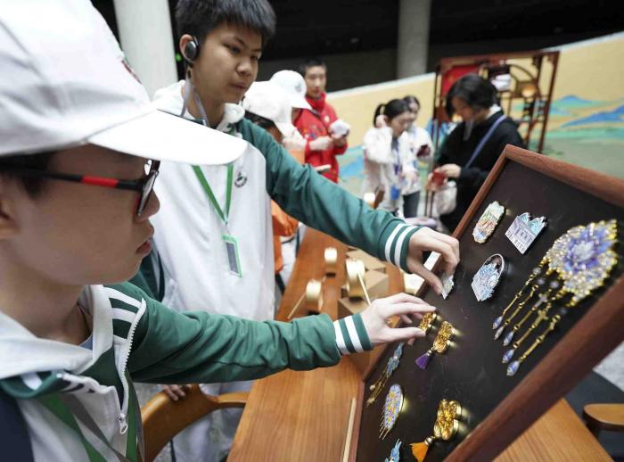 云盖寺绿松石国家矿山博物馆的文创产品吸引同学们驻足观看。