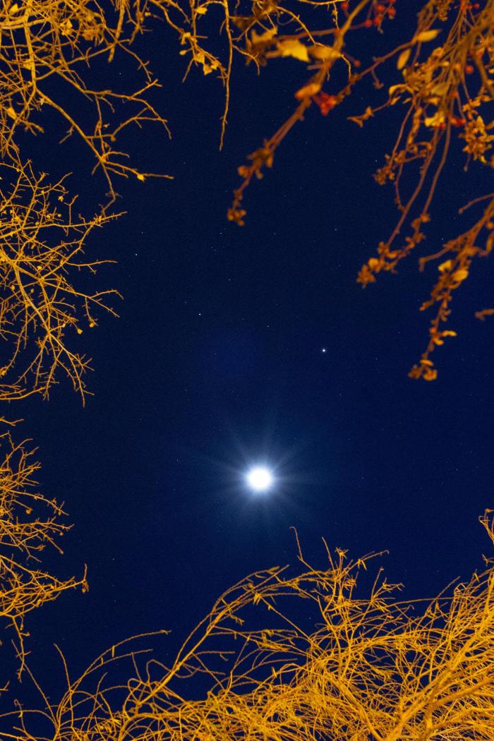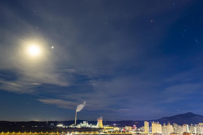 11月11日在黑龙江省伊春市伊美区拍摄的“双星伴月”。新华社发(李佳星摄)