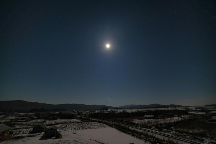 11月10日在黑龙江省北安市拍摄的“双星伴月”。新华社发(钱泊羽摄)