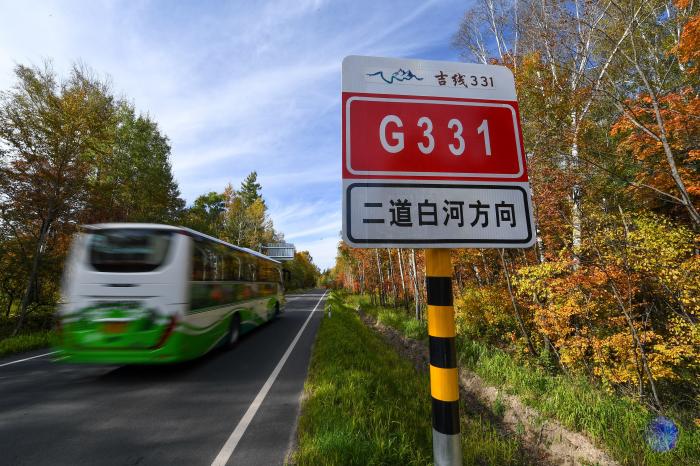 这条公路在辽宁、吉林段串联起众多乡村与景点,沿途可见崭新的旅游路牌、蓬勃的特色产业,正具体而微地展现着它为边疆地区带来的活力与改变。9月27日,车辆在G331吉林段上行驶。新华社记者 张楠 摄