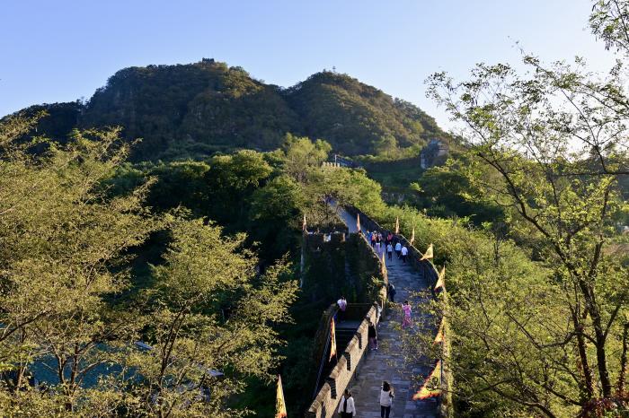 10月13日,游客在G331辽宁丹东段沿线的虎山长城景区游览。新华社记者 吴青昊 摄