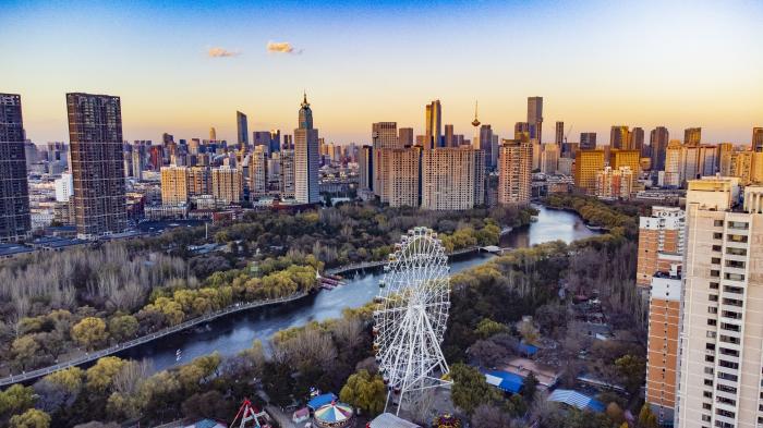11月9日拍摄的辽宁省沈阳市和平区南湖公园景色(无人机照片)。新华社发(邹新江摄)