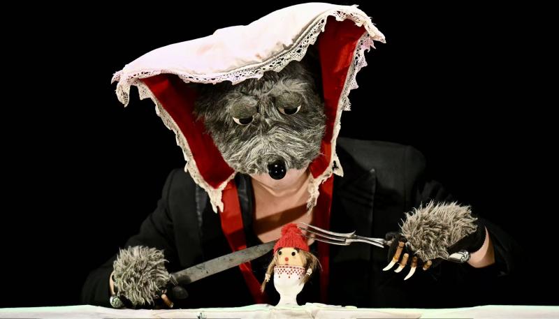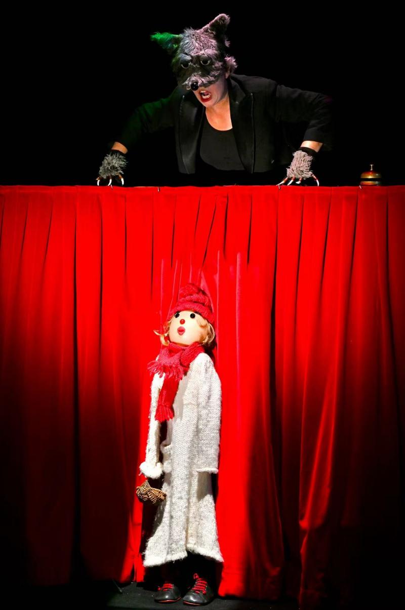 木偶师玛若莱娜·朱斯特既是改编者,又是偶型的设计和制作者,更是剧中小红帽和外婆的扮演者,奥菲莉亚·巴尔德在剧中实现了从音乐家到饿狼的转换,以声音和手风琴为武器,将女性形体巧妙融入狼的野性表征。