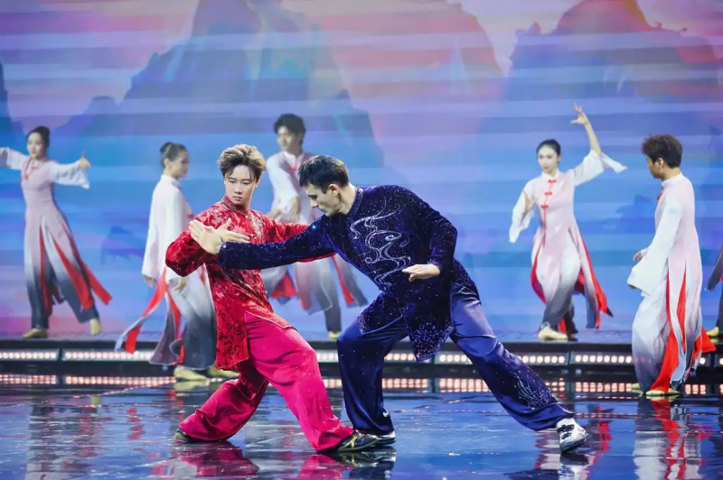 巴西武术爱好者莫小龙(右)与广西运动员唐陈鲲在“青年好伙伴·策马齐奔腾”跨国春晚上表演节目《太极》(1月16日摄)。新华社发 巴西武术爱好者莫小龙与跨国春晚再度相逢,与广西运动员唐陈鲲共展太极之姿。他们以身体为笔墨,缓缓推手、转身。“你中有我、我中有你”,既生动诠释了太极哲学,也形象体现了文明交融。