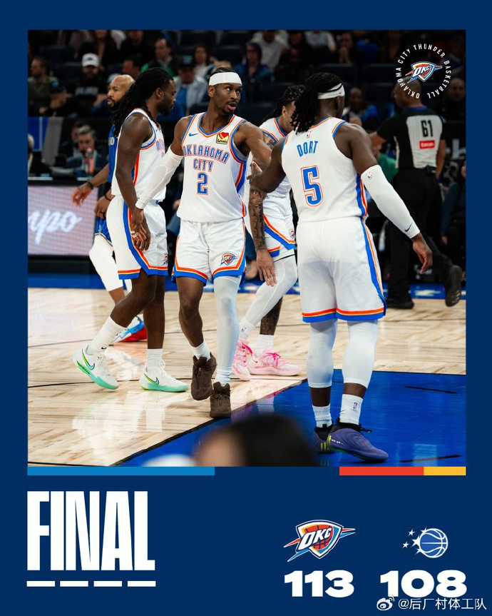 3月18日,身为卫冕冠军的雷霆队于客场以113比108的比分击败了魔术队,至此,他们已然斩获九连胜佳绩。此役过后,雷霆队以54胜15负的傲人战绩,成为本赛季首支笃定获得季后赛入场券的球队。