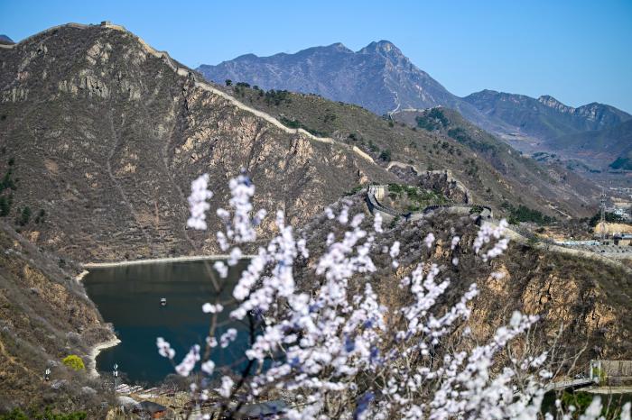 仲春时节,北京怀柔黄花城水长城边,山花竞相绽放,与长城交相辉映,构成一幅壮丽的春日画卷。