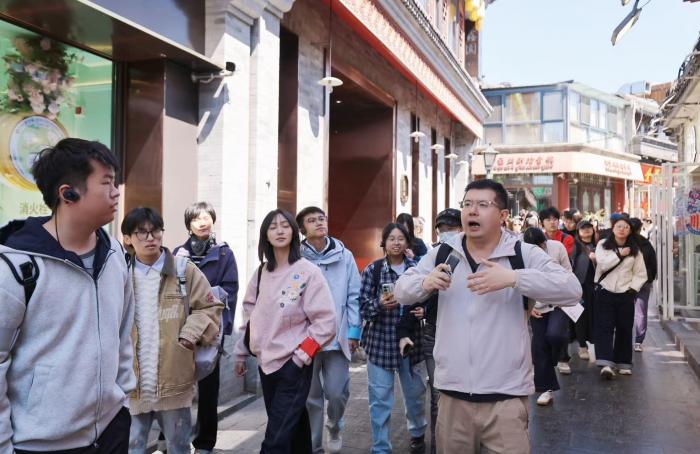 师生在烟袋斜街了解历史文化。