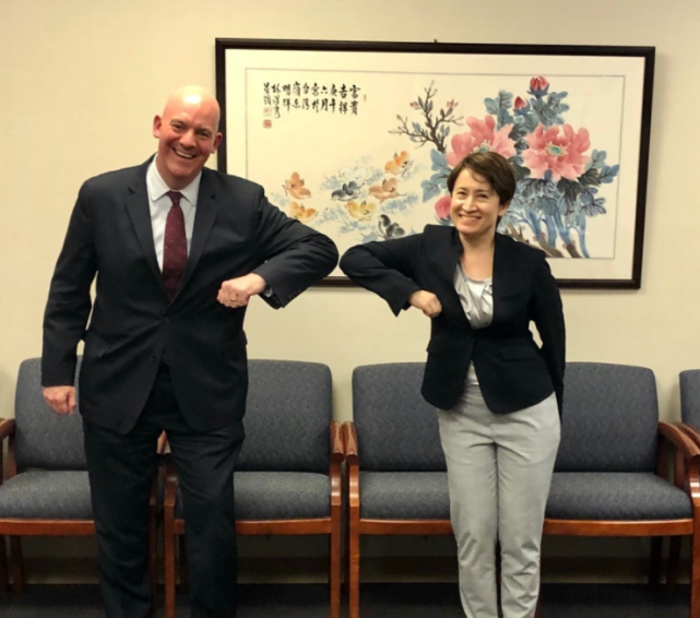 这是去年以来,台湾驻美机构“驻美国台北经济文化代表处”代表萧美琴与库珀第2次会面。萧美琴2020年7月底赴美就任不久,就曾与库珀会面。库珀当时会后通过推特分享与萧美琴以”肘击”取代握手的照片。