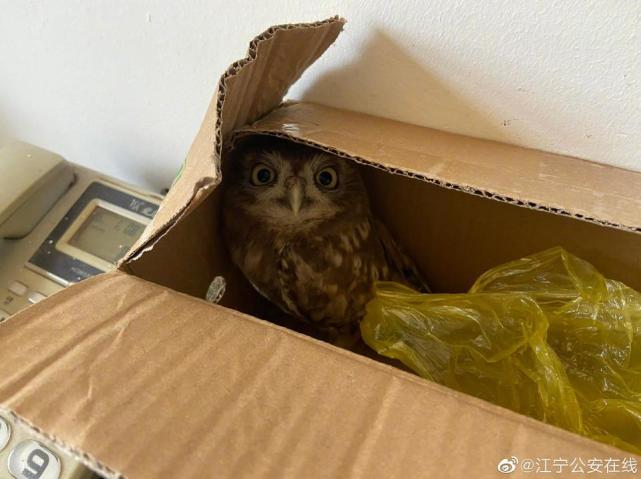 近日,南京市公安局江宁分局淳化派出所接到报警,报警人称自己在家门口附近捡到一只小猫头鹰,请求民警救助。