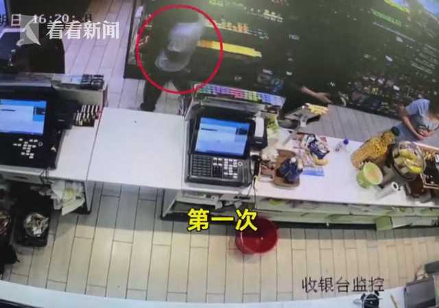 事发地点是南昌市福州路的一家便利店,公共视频显示6月28号傍晚6点多,便利店老板当场揪住了一名白衣男子。根据店长提供的店内视频,6月27下午4点多和6点多,这名男子就曾两次装成顾客进店购物,见店员忙于收银,借机偷走了货架上的白酒。而谁也没想到的是,就在便利店方面准备报警,对方竟然自己送上门来。