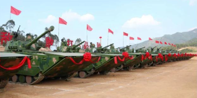 今年1月,东方网刊文披露,73集团军某重型合成旅下辖某团召开新年开训大会。文中配图显示,一排05式两栖步战车、05式两栖突击车车身悬挂红花出现在练兵场。文中提到,这支驻守福建漳州的两栖合成旅迎来一轮装备换代。