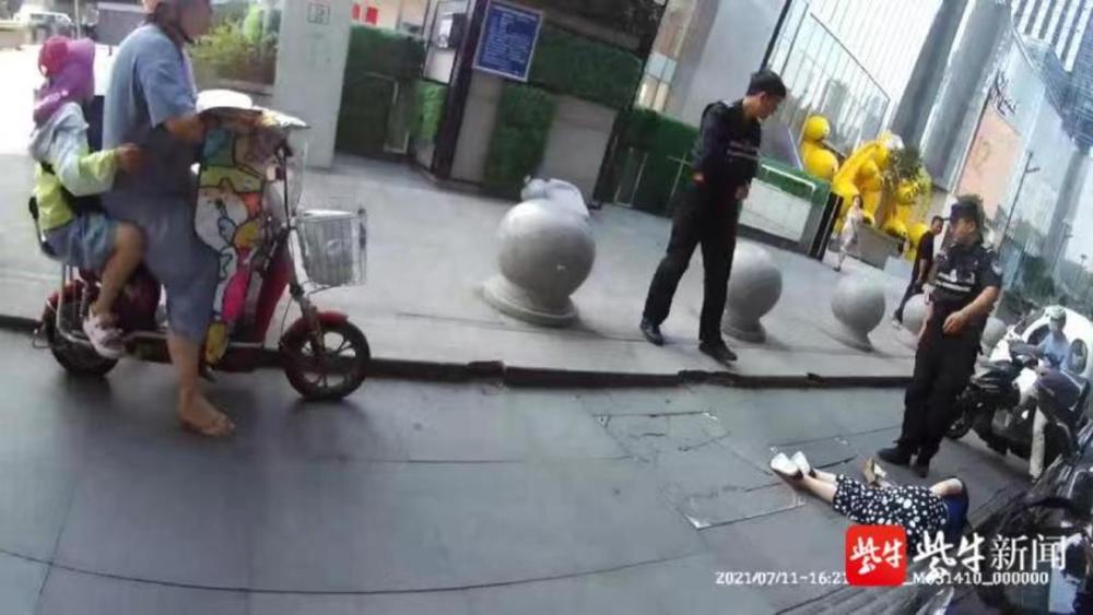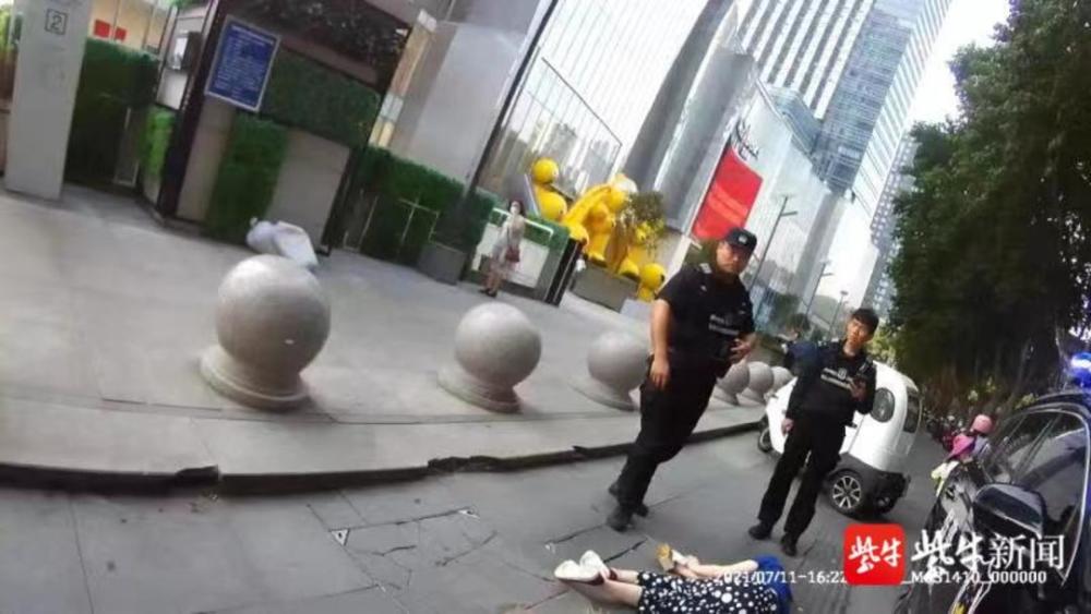 7月11日下午4点20分许,南京特警队员正在金茂广场值守时,一女子匆匆忙忙地赶过来,靠在警车边上,表现出很难受的表情。