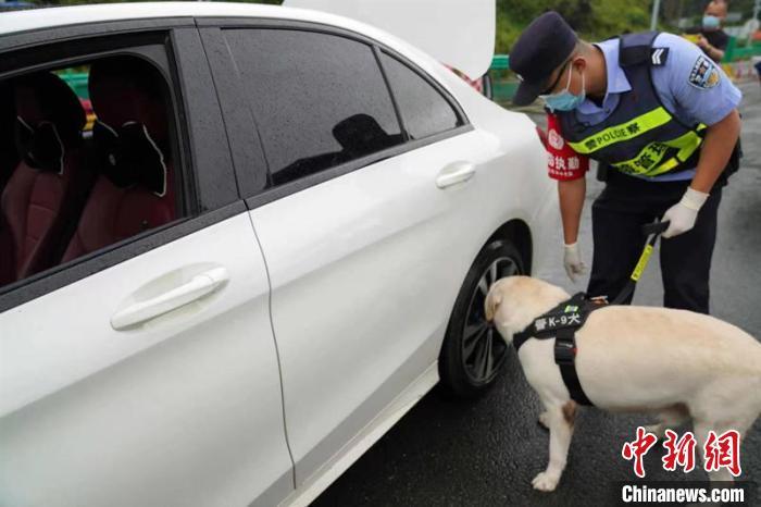“您好!请出示证件,接受边防检查。”在靖西市上坝高速公路执勤点,两名执勤民警正带着搜毒犬“小Q”对过往车辆进行检查,机智的“小伙伴”绕过车辆一圈,没有发现可疑物品后安静地蹲在民警旁边蹲下。