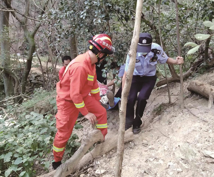 女子登山期间扭伤脚踝无法行走 北京怀柔消防抬人下山