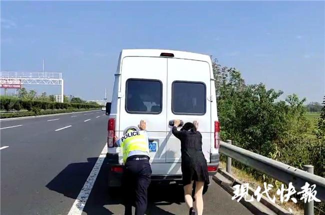 见商务车高速路上熄火,民警徒手推车200多米