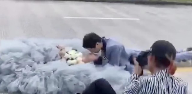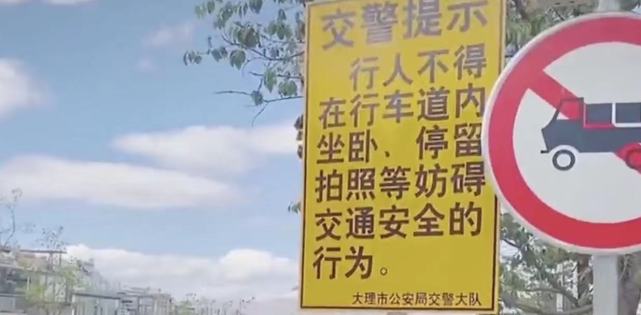 网友上传的视频中,拍婚纱照的一男一女直接躺在道路中间,全然不顾一旁写有“行人不得在行车道内坐卧、停留拍照”的提示牌和过往车辆。据了解,视频中的网红公路为云南大理弘圣路,因拍照时能与洱海及群山“同框”被称为“大理最美公路”,吸引着不少游客前来打卡。