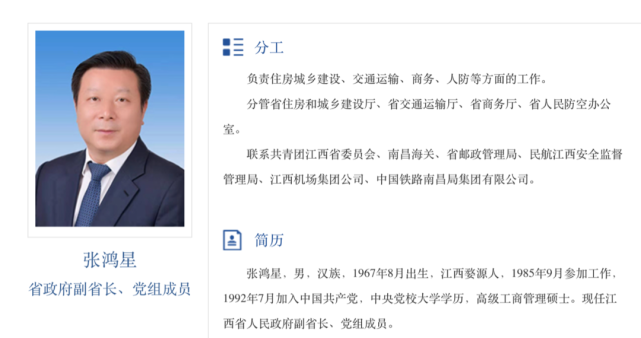 与任珠峰不同,张鸿星长期在江西本地工作,担任过南昌市委常委、常务副市长,抚州市委副书记、市长,抚州市委书记等。