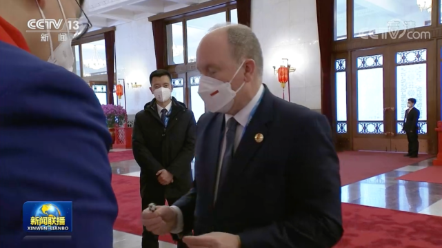 在“庙会”上,摩纳哥阿尔贝亲王体验了面塑制作,在完成了一个面人版的北京冬奥会吉祥物冰墩墩后,摩纳哥亲王阿尔贝二世还请求工作人员让他再做一个,并解释说他家有一对龙凤胎,如果只带回去一个冰墩墩,那就不好交代了。