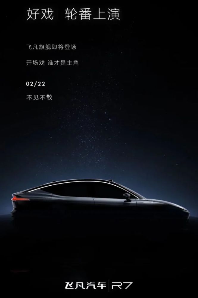近日,飞凡汽车再起官方账号中发布了旗舰车型飞凡R7的预告图,官方预告图的主题是:好戏 轮番上演。下方则写到:开场戏 谁才是主角,并标明2月22日不见不散。除此之外,官方并没有给出更多信息。