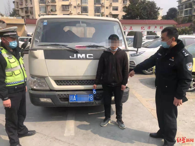 2月27日上午,温江区生态大道第二绕城高速交警执法站,交警十一分局民警发现一名男子正蹲在货车的前号牌处,从车号牌上取下什么东西。民警上前询问,这名男子神色慌张,一言不发,民警从男子的外套包里翻出了一张数字6的磁性号牌贴。