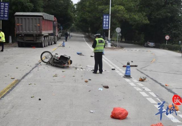 由于制动距离过短,尽管已猛转方向盘,重型半挂牵引车驾驶人邓某没能避免与从路口驶出的摩托车相撞,迎面的冲击力使得莫某与黎某被撞飞。