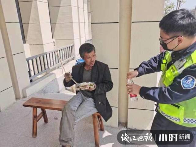 3分钟后,交警到达现场并将行人控制带离高速。由于该男子只会地方方言,沟通不太顺畅,高速工作人员立刻联系马屿派出所处置。此时,巡查员通过一些简单的口语及手势了解到,该男子从前一天饿到了现在。现场工作人员赶紧为其打来了快餐,让他先垫垫肚子。