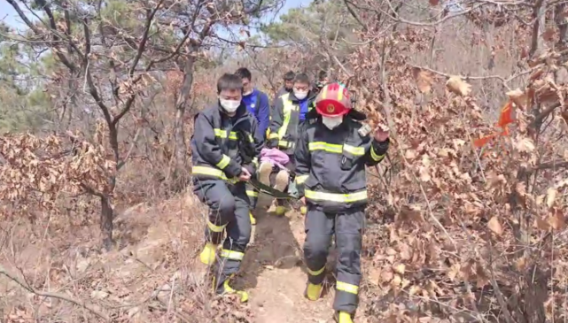 经过一番搜救,消防人员终于在靠近山顶的位置找到了一家四口,女孩脚部受伤不敢动弹,精神状态良好,消防人员将女孩抬上担架并将其固定好,随后几名消防员合力抬着女孩下山。一个多小时后,女孩被成功转移至山下,随后被送往医院救治。据了解,女孩脚部韧带拉伤,其他并无大碍。