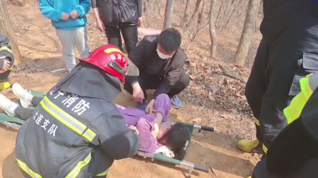4月4日13时30分,大连消防马栏子站接到报警电话,一名年轻女孩受伤被困在彩霞园小区旁边的山上,急需救援,消防站迅速出动1辆消防车拉载7名指战员赶赴现场救援。