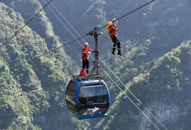 游客被困缆车怎么办?张家界天门山举行索道应急救援演习