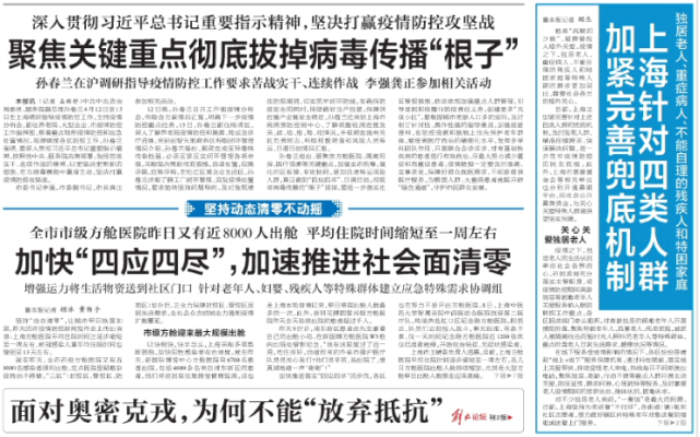 就在4月14日,《解放日报》头版刊发了一篇文章,标题为《上海针对四类人群加紧完善兜底机制》。