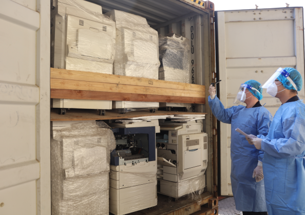 关员在对一批超期未申报品名为“旧复印机”的7个集装箱货物进行属性鉴定过程中发现,该批货物外观陈旧,部分机器外壳脱落、墨盒缺失、配件散落。疑似国家禁止进境的固体废物,海关关员随即进行取样送检。经鉴定,该批货物为废弃计算机类设备和办公用电器电子产品,属于国家禁止进口的固体废物。大窑湾海关第一时间派员对退运进行全程监管,并协调港务、船公司等相关单位,积极推进退运进程,确保这批固体废物全部退运出境。