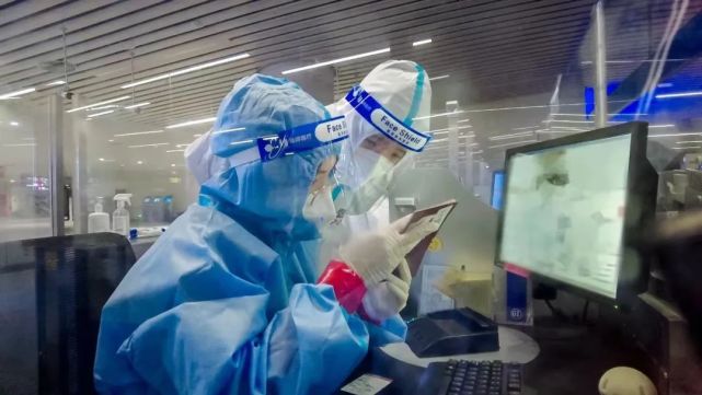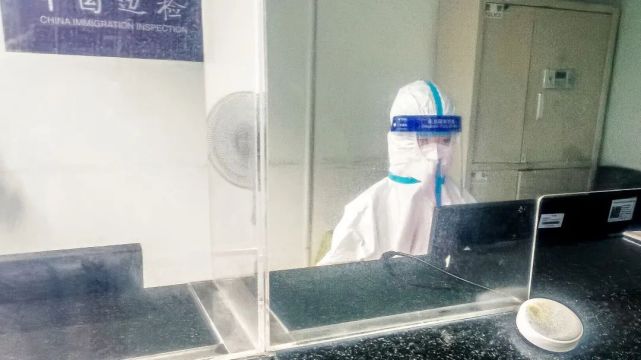 “航班已经落地,旅客准备下机,梁雪莹、曹康淳……穿防护服,准备上台!”对讲机的声音突然响起来,前一刻还听着儿子分享“五一”假期旅途趣事的雪莹匆忙与孩子告别,前往备勤室时脸上还挂着意犹未尽的温柔微笑,而穿好防护服后的她不仅仅是一位妈妈,更是一名保卫国门平安的“边检大白”。