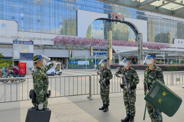 “五一”假期,深圳景区、商业圈、机场和车站客流量增大,为了让市民安全放心地出行,担负执勤任务的武警广东总队深圳支队及时周密部署,合理调配兵力,为市民出行安全提供有力保障。