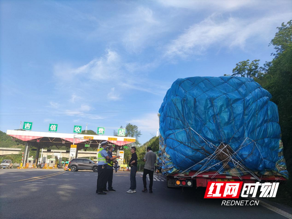 5月4日下午,正值五一小长假返程高峰,一辆六轴平板大货车在G56杭瑞高速吉怀段吉信收费站被工作人员果断拦停,原因是超限运输快递。