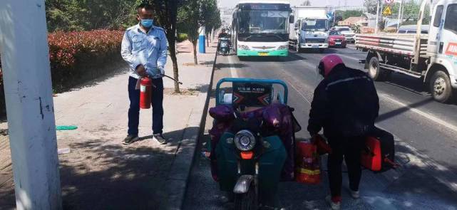 郑喜胜见状,立即拉起手刹打开车门,抄起车载灭火器就冲下了车。他一路小跑来到电动三轮车跟前,熟练地操作灭火器对准火源喷射干粉,迅速将火苗扑灭。为避免妨碍交通,确认没有安全隐患后,郑喜胜和交警又帮忙把电动三轮车推到路边。郑喜胜高效的处置获得了乘客们的肯定,返回车厢后,大伙纷纷为其点赞。