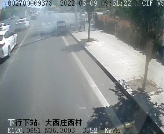 电动三轮车路口自燃,胶州交警和公交驾驶员联手灭火救援