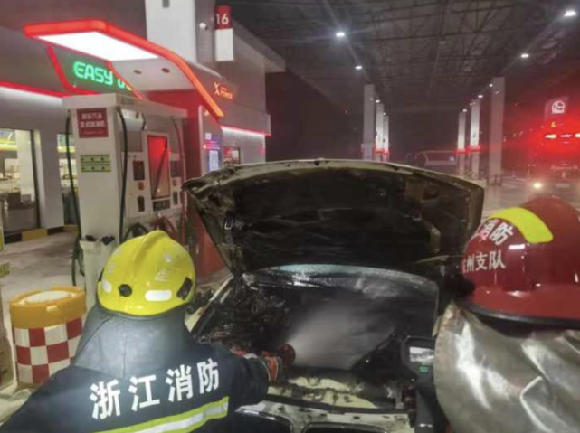 “加油站工作人员说,车停到加油机器前,车头就开始冒烟了。”到场处置这起火情的近江消防站消防员告诉小时新闻记者。