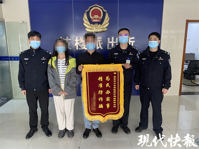 5月11日,市民张女士来到南京市公安局鼓楼分局鼓楼派出所,送上一面印有“为民办实事,精准防诈骗”的锦旗,感谢民警仅用2天就帮她挽回400余万元损失。