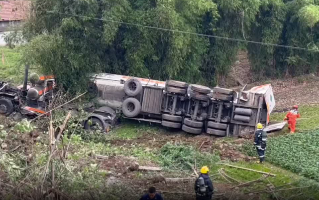 惊险!槽罐车侧翻引发危险化学品泄漏 消防及时解除险情