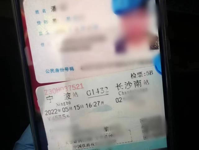 5月15日17时40分,在宁波站开往长沙南站的G1432次列车上,长沙乘警支队乘警长彭握接到列车长通报,2号车厢8排某旅客票证人信息不一致。民警当即前往核查,经核查,该男子车票信息显示为黎某某、33岁,但证件照片与本人相差较大。经过民警反复讲解宣传相关法律规定,该男子出示其本人身份证,经确认,男子实为现年44岁的潘某。