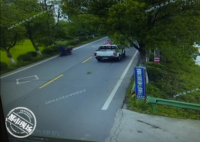 为了节约时间,民警驾驶警车提前在蒋巷中心公路上等待,并通过电话联系报警人准备“接棒”。