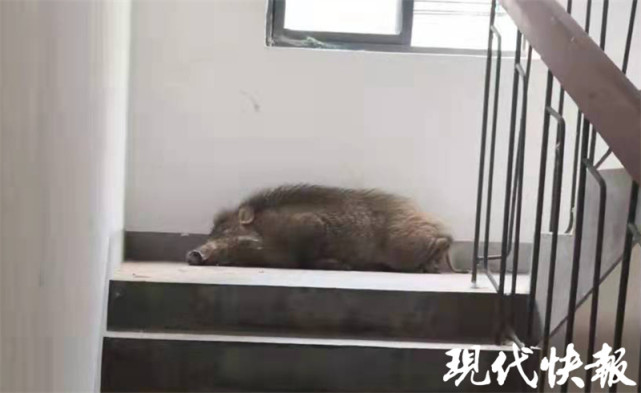 “昨天中午我在家的时候就听到楼道里有什么声音,打开一看竟然是一只野猪到处乱撞,身上还有血,趴在了楼梯间里。”5月23日下午1点多,家住镇江市区运河路38号大院的市民王先生在家门外看到了一只受伤的野猪,而与此同时,镇江市公安局润州分局鹤林派出所也接到了市民“举报”。据附近居民称,这只野猪可谓“跋山涉水”而来,进入小区前,有人目睹它横渡古运河。
