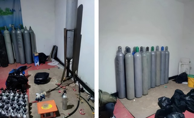 近日,九江市公安局八里湖分局成功破获一起非法经营“笑气”案,查获违法犯罪嫌疑人13名,捣毁窝点1个,查扣大钢瓶31个、铝制气瓶87个。
