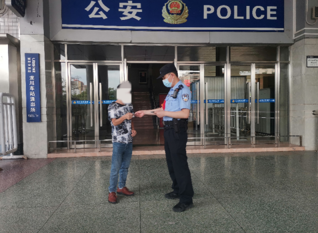 5月26日上午,龙川站派出所民警在蓝口站巡查时,在车站停靠的一节货车车厢上发现了一名背着双肩包、身份不明的男子。为不影响列车正常行驶,民警当即将该男子带走调查。